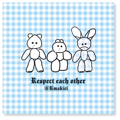 爽やかなサックスブルーのギンガムチェックにくまきち、きんたろう、うさじが描かれた