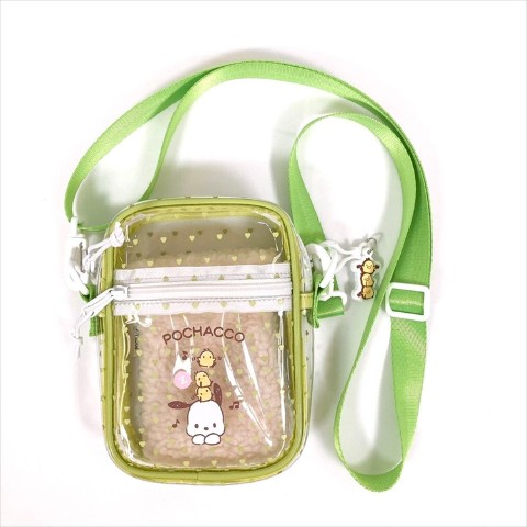 トレンドのクリアデザインのショルダーバッグにもこもこ巾着がセットになりました!アクセサリーや小物を見せた使い方もオススメ。サンリオキャラクターたちのストラップ付きがうれしいポイント。