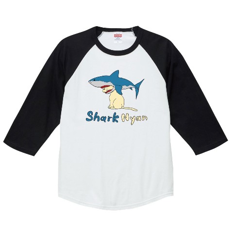 鮫を被った謎の猫「シャークニャン」のラグランTシャツ!