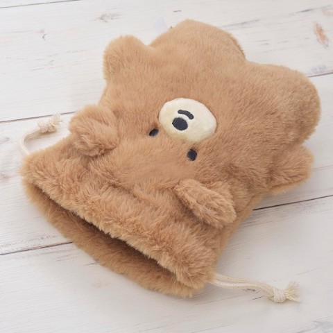 紐を絞ると ころまるさん の形になるぬいぐるみ巾着。