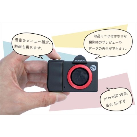 画素数こそ30万画素とトイデジ仕様ですが、外観はしっかりとしたカメラらしい形でデザイン。背面液晶モニタ搭載で、撮影時のフレーミングや撮影後のプレビューも可能です。