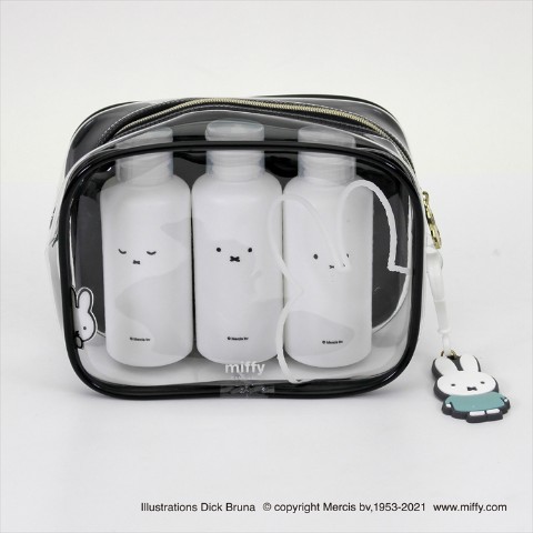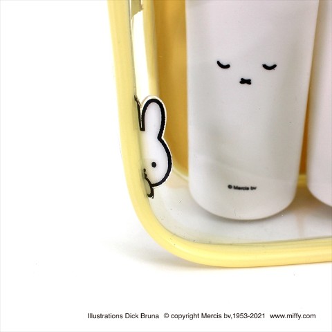 トレンドのクリア素材にさりげないmiffyがプリントされたスペシャルなアイテムが新登場。miffyフェイスがプリントされたボトルがセットになったポーチはお泊りやトラベルにおすすめです。かわいいmiffy引手、取り外し可能なmiffyチャーム、ひょっこりmiffyタグ等細部までこだわった癒しデザインがポイント。