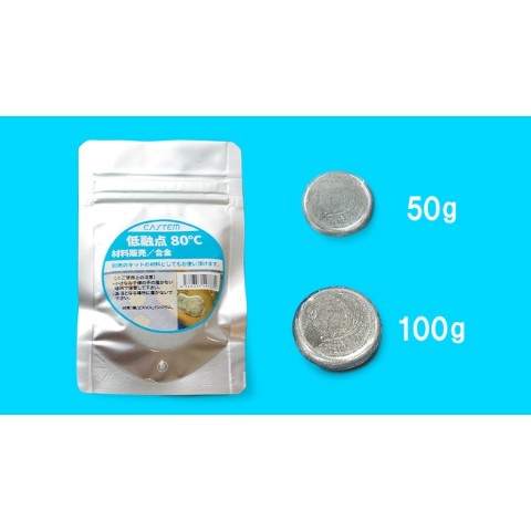 「INSTANT CASTING KIT 低融点80℃-お湯で溶ける金属で自由工作できるキット-」(別売)の材料のみの販売です。「もう少し大きいものが作りたい」「同じものを複数作りたい」という方に。