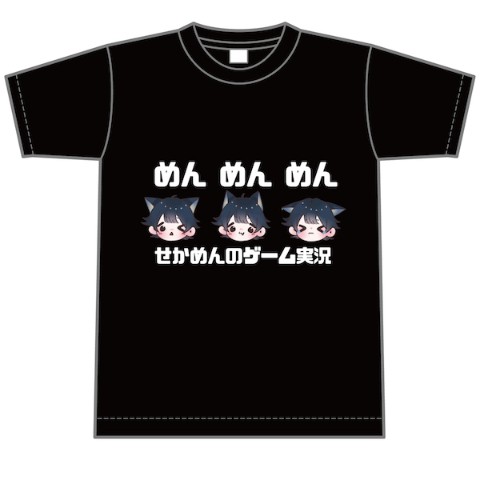 【せかめん】めんめんめんTシャツ 黒(Mサイズ)