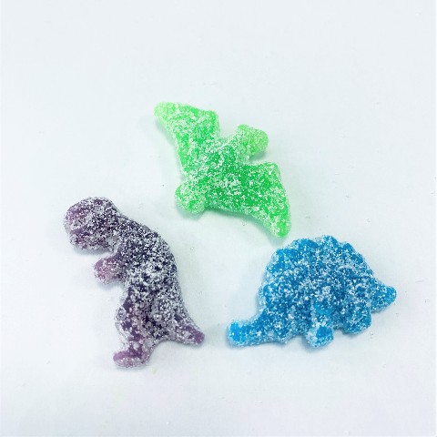 刺激的な酸味がクセになる、恐竜の形をしたグミ。ストロベリー、レモン、オレンジなどフルーツ味。