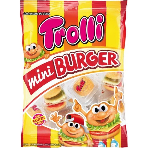 ミニサイズのバーガーをイメージした可愛らしいグミ。(5粒入り)ストロベリー、アップル、パイナップルなどのフルーツフレーバーです。