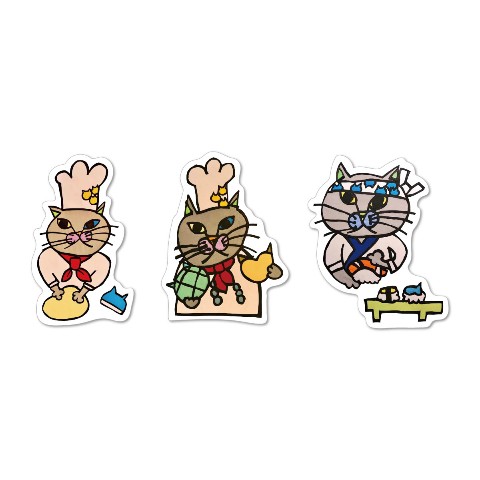 【NEKO KEN】ステッカーセットD(ネコのパン屋さん/ネコのパン屋さん・仕込み風景/ネコのお寿司屋さん)