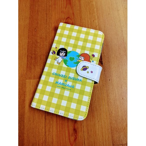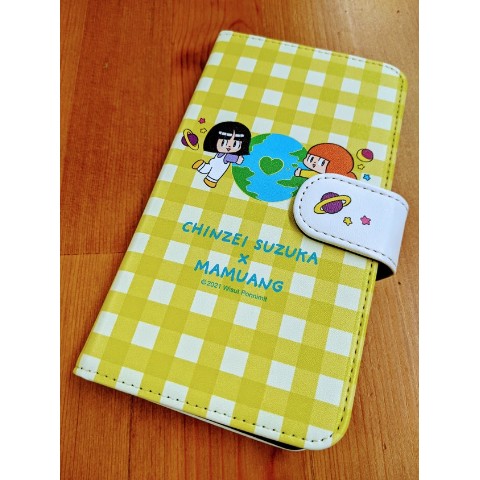 【鎮西寿ー歌×マムアン】手帳型スマホケース(イエロー)LLサイズ