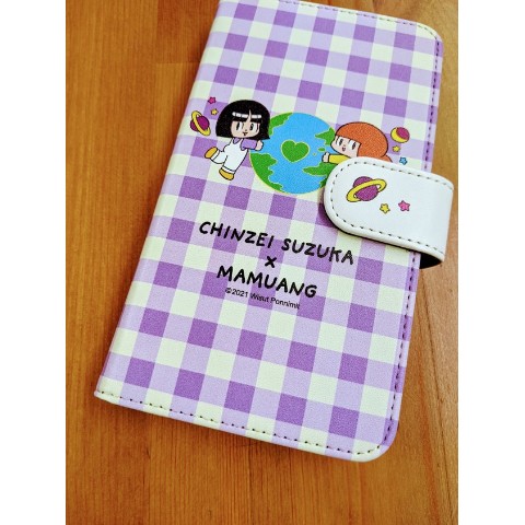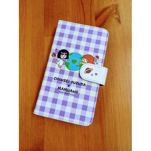 【鎮西寿ー歌×マムアン】手帳型スマホケース(パープル)LLサイズ