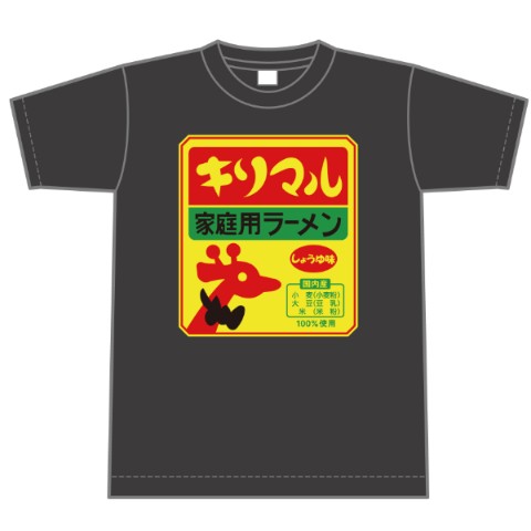 キリマルラーメンのレトロチックでキュートなパッケージロゴを、そのままブラックTシャツに落とし込みました♪