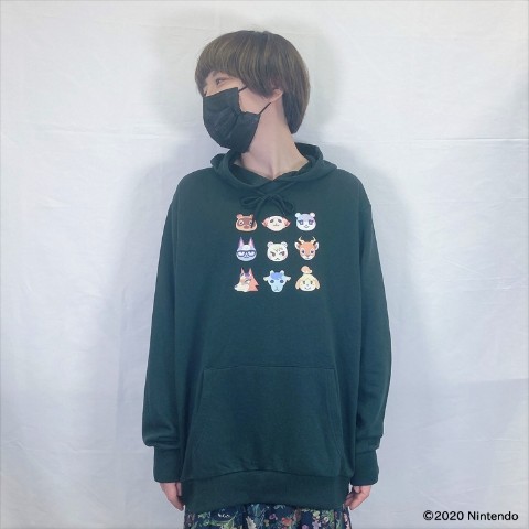 【あつまれどうぶつの森】プルパーカー 島の住人いっぱい ブラック Lサイズ