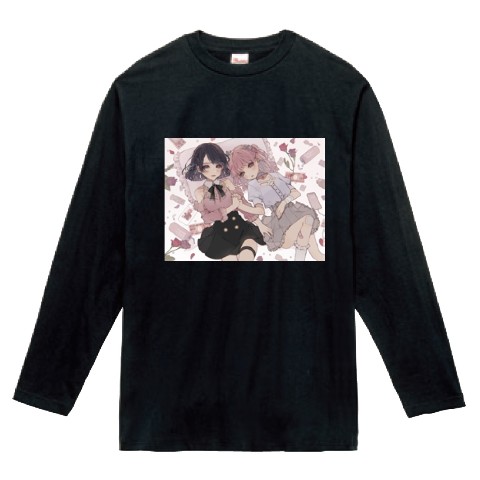 【はむねずこ】私たち、がんばったよねロングTシャツ ブラック(LLサイズ)