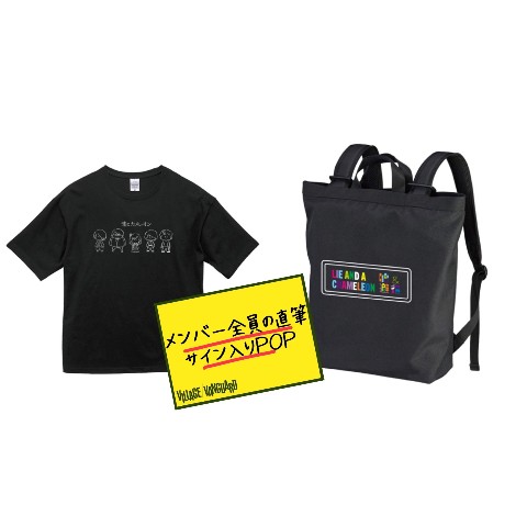 【嘘とカメレオン×みぞぐちともや】ビッグTシャツ(BK)&リュックサックセット(POP付)