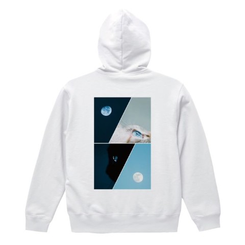 【宵月絃】パーカー 猫と月 WH(Lサイズ)