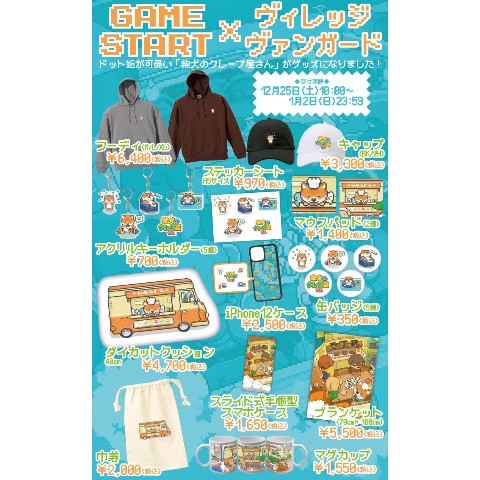 日本だけでなく海外まで幅広く250万ダウンロードを達成した、可愛くて癒されると大人気のドット絵ゲーム『柴犬のクレープ屋さん』とヴィレッジヴァンガードのコラボグッズが完成しました!