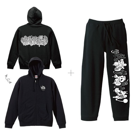 ジップパーカーとスウェットパンツのブラックMサイズのセットです。
