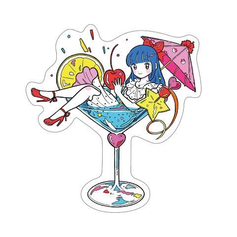 カクテルの中でほほ笑む遠野さんをイラストレーターいちさんが描き下ろし。