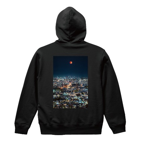 【まちゅばら】パーカー(街と月)ブラック L