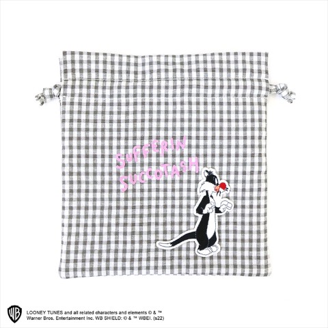【ルーニー・テューンズ】チェック 巾着ポーチ BK