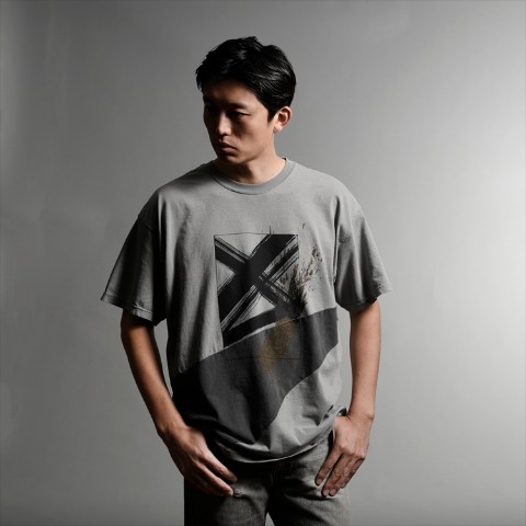 冥人の型に入ったモノクロの世界で、境井仁が一撃で敵を倒していく、その太刀筋のイメージを T シャツにリメイクとして表現しました。