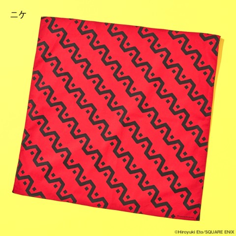 ニケが身につけているバンダナと、ククリのミグミグ族の帽子をイメージしてデザインしたバンダナです。約520×520mmというサイズで、ハンカチとしてもバンダナとしてもお使いいただけます。