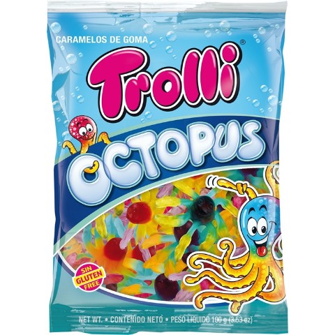 カラフルでユニークなタコの形をしたストロベリーフレーバーのグミです。