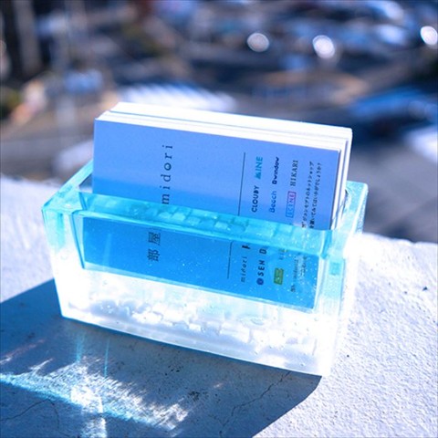 上部に95mm×30mmの溝があり約150枚名刺を挿入できる名刺ホルダーとなります。大切なあなたの繋がる方ーを空に浮かびます。