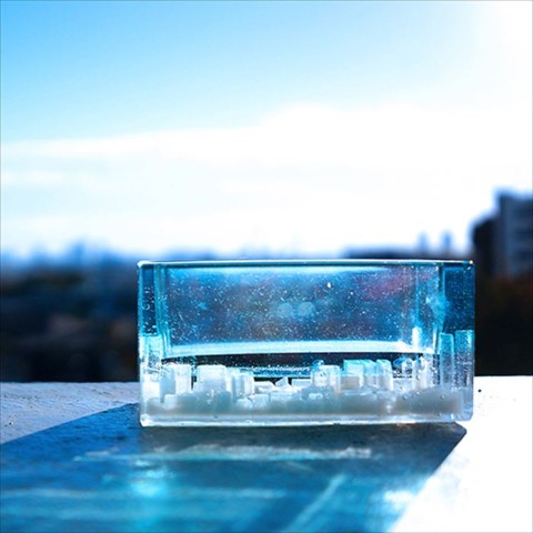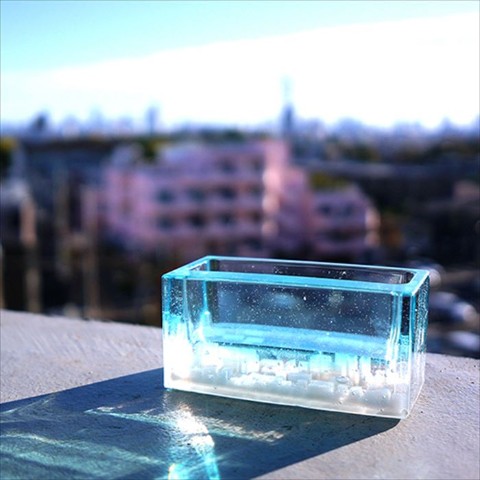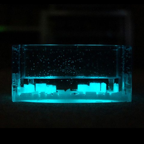 街並み部分に光を貯めて暗闇で光る溜光塗料を付着しました。ネオン街の夜景のようにぼんやりと淡く光ります。