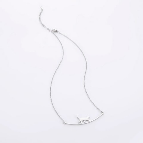 【#kawaiiiii!】小道を歩く猫 ネックレス (シルバー)