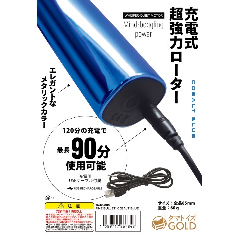 新レーベル「タマトイズGOLD」 High power vibration ■Mind-boggling power ■10 FUNCTIONS ■WATERPROOF ■USB RECHARGEABLE ■WHISPER-QUIET MOTOR 充電式超強力ローター 脅威のハイパワーバイブレーション 振動音が小さい静音仕様 10パターンの振動が楽しめる エレガントなメタリックカラー お風呂でも楽しめる防水仕様 充電用USBケーブル付属 ボタン長押しで電源ON/OFF ボタンワンプッシュでファンクション切り替 120分の充電で最長90分使用可能 商品仕様 サイズ:全長85mm 重量:60g カラー:コバルトブルー