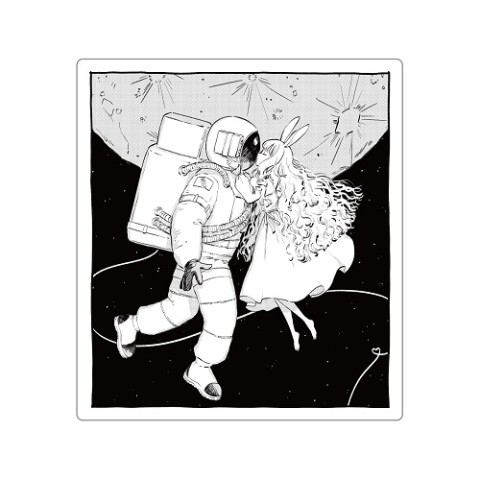 【なし子】ステッカー ウサギとニンゲンモノクロ