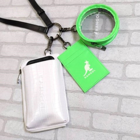 小物入れも兼ねた携帯ケース、KANGOLロゴがプリントされたポーチとカードケースは使い勝手の良い、POPなカラーの3連ショルダーです。