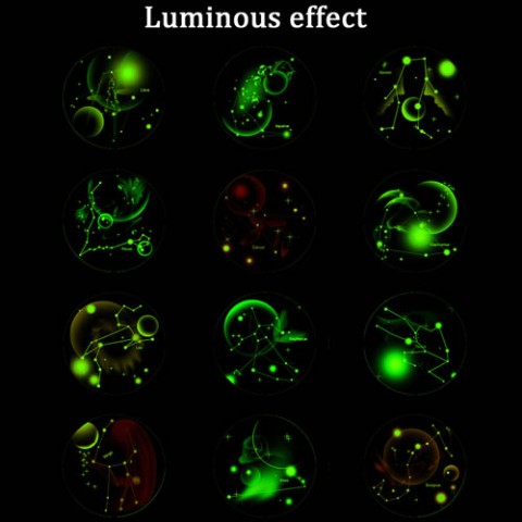 強めの光を照射後、暗闇で星座が光るペンダントです。