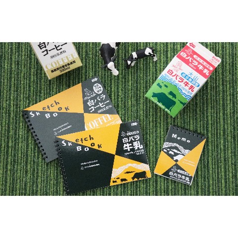 定番のスケッチブックはB6サイズ。上質な紙質はそのままに、表紙に白バラ牛乳・白バラコーヒーのデザインを用いました。