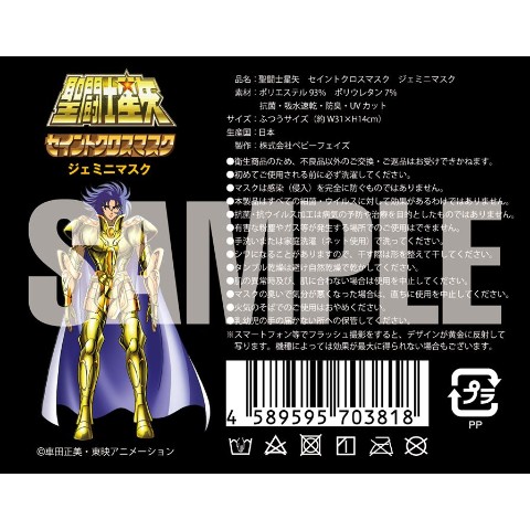 「君は小宇宙を感じたことがあるか?」1980?90年代に一世を風靡した伝説のTVアニメ「聖闘士星矢」の初回TV放送から35年。この35周年記念イヤーに、地上最強の「セイントクロスマスク」が誕生!!ラインナップはアリエスマスク(牡羊座)、タウラスマスク(牡牛座)、ジェミニマスク(双子座)、キャンサーマスク(蟹座)、レオマスク(獅子座)、バルゴマスク(乙女座)、ライブラマスク(天秤座)、スコーピオンマスク(蠍座)、サジタリアスマスク(射手座)、カプリコーンマスク(山羊座)、アクエリアスマスク(水瓶座)、ピスケスマスク(魚座)の黄金12星座!!抜群の装着感と防御力を誇るポリエステル製マスク(MADE IN JAPAN)!!