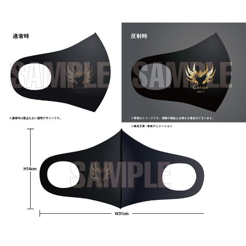 普段は透明の目立たないマスクパーツのデザインが、スマートホンなどの「フラッシュあり」機能で撮影すると、マスクパーツが黄金に反射して写ります。