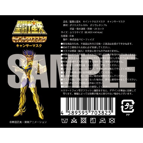 「君は小宇宙を感じたことがあるか?」1980?90年代に一世を風靡した伝説のTVアニメ「聖闘士星矢」の初回TV放送から35年。この35周年記念イヤーに、地上最強の「セイントクロスマスク」が誕生!!ラインナップはアリエスマスク(牡羊座)、タウラスマスク(牡牛座)、ジェミニマスク(双子座)、キャンサーマスク(蟹座)、レオマスク(獅子座)、バルゴマスク(乙女座)、ライブラマスク(天秤座)、スコーピオンマスク(蠍座)、サジタリアスマスク(射手座)、カプリコーンマスク(山羊座)、アクエリアスマスク(水瓶座)、ピスケスマスク(魚座)の黄金12星座!!抜群の装着感と防御力を誇るポリエステル製マスク(MADE IN JAPAN)!!