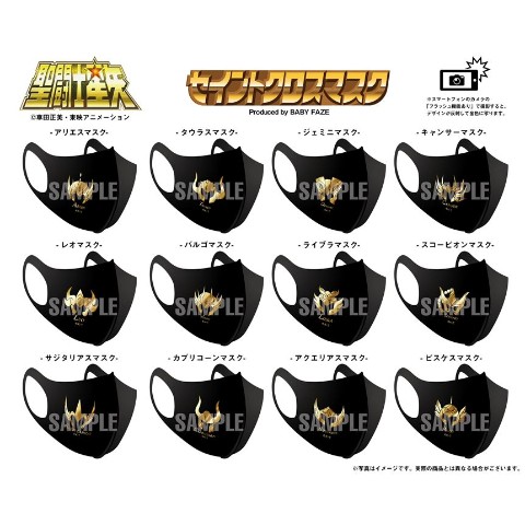 「聖闘士星矢」より黄金聖闘士12人のマスクパーツをモデルにしたポリエステル製のマスクが発売!!