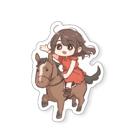 馬に乗って華麗に走る西尾さんをイラストレーターのまつだひかりさんが描き下ろし。
