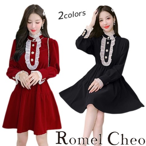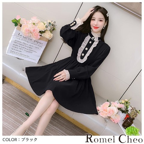 【RomelCheo】宮廷風スタンドフリルワンピース(ブラック)