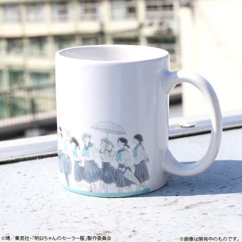 磁器のマグカップ。アニメのオープニングやエンディング、本編の印象的なカットをデザインしました。