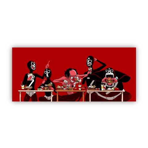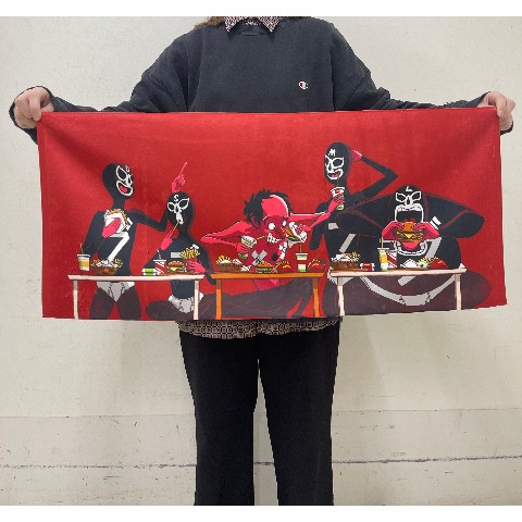 エガちゃんとブリーフ団の食レポ?!ちゃぶ台も忠実に再現!!飾っても可愛いタオルです!!