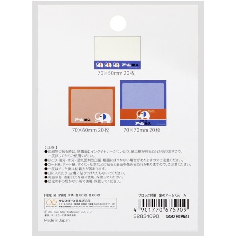 3柄あってサイズも大きく書きやすい、ブロック付箋。赤と紺色が印象的なデザイン。