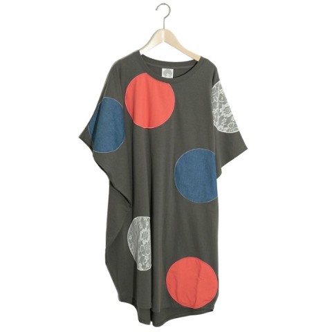 【ScoLar】水玉アップリケワンピース / チャコールグレー