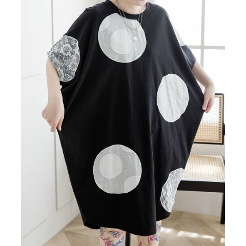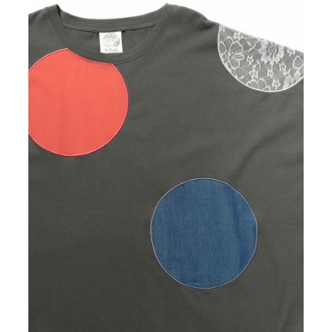 大きなドットアップリケを貼り付けたクラフト感のあるアイテムです。