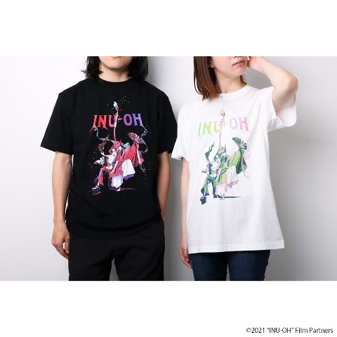 ポスタービジュアルの犬王と友魚をフルカラーでプリントしたTシャツ。