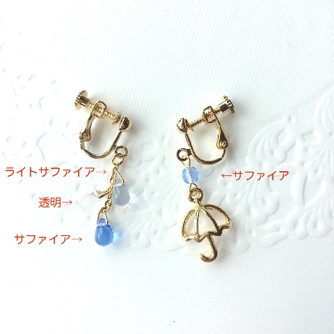 雨の日にもちょっと気分を上げる♪傘と雨粒のイヤリングです。