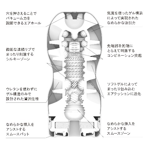 絡みつくように設計されたディテールと、エアクッションによる繊細な弾力が織りなす、極上の快感をお楽しみください。