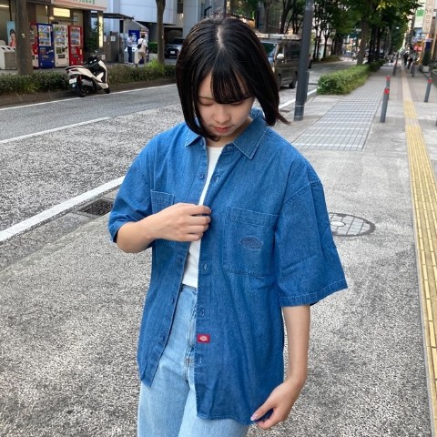 【Dickies】デニムワンポイント 刺繍半袖シャツ BL Mサイズ