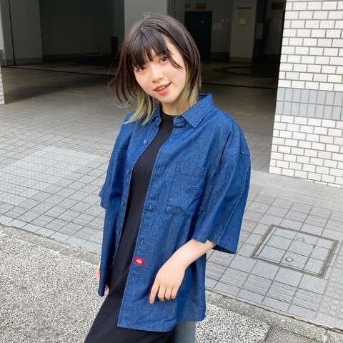 【Dickies】デニムワンポイント 刺繍半袖シャツ NV Mサイズ